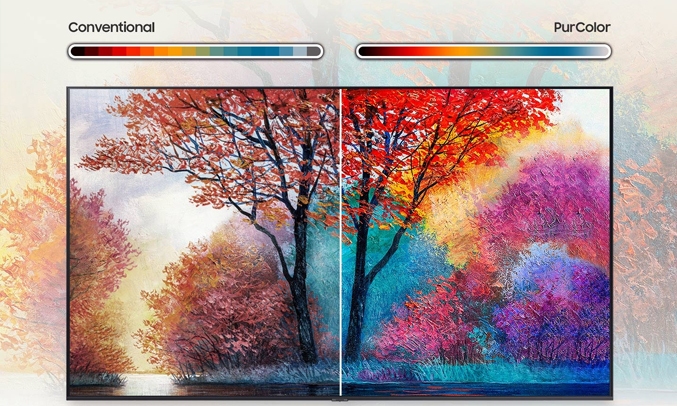 Tivi SamSung sẽ khiến bạn choáng ngợp trước dải màu sắc hiển thị rộng lớn và rực rỡ từ công nghệ PurColor. Đắm chìm trong từng khung hình sống động và chân thực như bước ra từ cuộc sống.